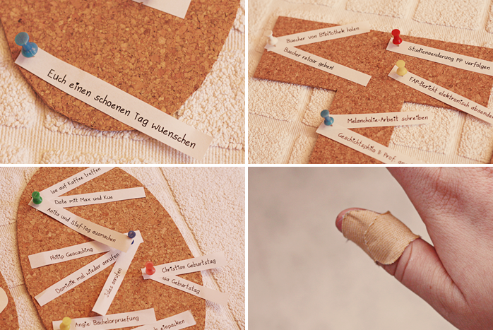 oah, voll die gute Idee! Meine Mitbewohnerin und gleichzeitig liebste Freundin geht für 10 Monate nach Kanada, wahrscheinlich als Rache für meinen Amerikaaufenthalt 😀 und ich bin jetzt schon am überlegen, was ich ihr tolles als Abschied schenken könnte. Die Idee mit der Korkplatte ist sehr gut, weil Kork ja total leicht ist und es bei ihr normalerweise immer Übergepäckprobleme gibt 😉 Danke dafür und noch viel Erfolg beim Lernen 😉