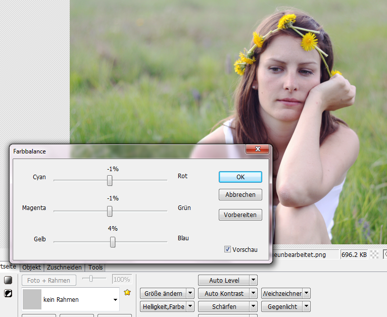 Je nach Foto könnt ihr nun an dem Balken herumspielen und schon relativ viel rausholen.
