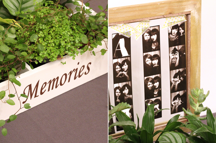 Dieses hübsche Ding habe ich von A. zum Geburtstag bekommen. Kleinigkeiten besitze ich genug, die endlich Stauraum haben könnten, das war mir jedoch viel zu schade und ohne Bedeutung. Daher mussten Pflanzen her (die, wie ich mich kenne, vielleicht nicht einmal den September überleben. Wobei ich alle anderen zurzeit seit 1-2 Jahren gut pflege und hege!). Um dem Schriftzug gerecht zu werden, habe ich auf die Glasplatte vier Fotostreifen von A. und mir geklebt.