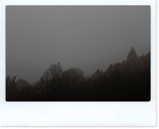 Achja, was mich deprimiert ist diese Aussicht. Seit Tagen sehe ich nicht mehr als den blätterlosen Wald nebenan. Das Foto ist unbearbeitet und entstand um 15.00 nachmittags. Dunkelheit und Nebel sind nicht meine Freunde.