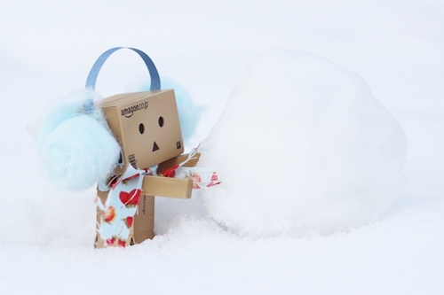 oh yes, even Danbos do freeze, so he got a scarf and earmuffs, cute, ya?