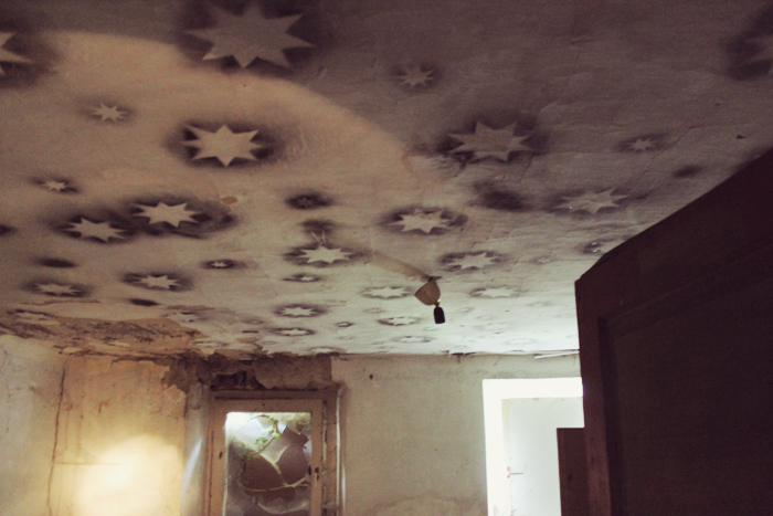 Die Sternendecke finde ich ganz besonders toll:-) Ich glaube fast, dass sich hier in meiner Umgebung niemals solche tollen leerstehenden Häuser finden würden. Ich hätte jedenfalls keine Ahnung, wo suchen. Bei uns wird alles kontrolliert und gleich wieder verbaut… Toll, das zu sehen. Könnte man wohl den Bauplatz kaufen und dann über das Haus verfügen?!
