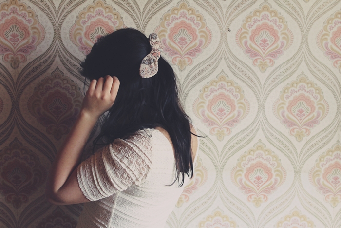 Mal wieder ein Hochgenuss sich deine Bilder anzusehen! Manchmal reicht es ja schon aus, wenn nur eine Sache wunderbar ist, und diese Tapete ist wirklich sehr schön! Die Fotos mit den Beinen, die Gardine, die Schleife im Haar- mal wieder wohnt alle dem ein ganz besonderer Zauber inne!