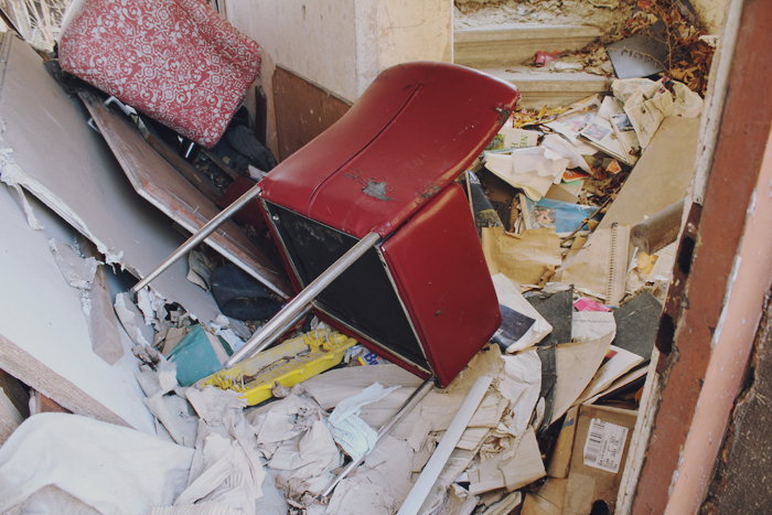 Also mal zu allererst: tolle Fotos. Ich mag so alte, kaputte und dreckige Dinge auf Fotos. Vor allem Authentisches. Die kaputten Tassen, oder auch das darauffolgende Foto mit den herabhängenden Verputz-Stücken sind toll. Auch der Bürostuhl gefällt mir! Die gebrochene grüne Fließe hast du auch sehr gut eingefangen. Das letzte Foto ist ebenso sehr gelungen, wie ich finde. Toll ^.^