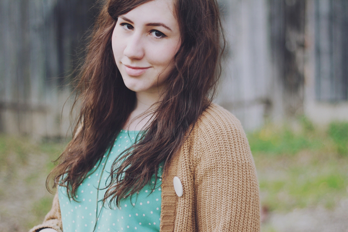 Kleid: mint&berry via zalando // Brauner Cardigan: H&M // Kette: H&M // Schuhe (braun): Deichman (Wedges): Vögele-Shoes // Beiger Button: c/o maedchenwahn // Uhr: Casio // Kleine braune Tasche: c/o Ernstings Family