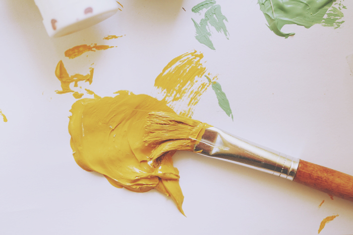 Alles begann mit einer Tube mintfarbener Acrylfarbe, die mir in die Hände fiel und mir zuflüsterte: Bitte, mach was aus mir. Mach mich schön. Verwende mich. Male deine Wände mit mir schön an. Nun ja, die Wände wurden es nicht – wobei ich wirklich meinem Lanzarotrot an der Wand entgegen trete und meinen vier Wänden (eigentlich sind es dreizehn! – mein Zimmer ist so verwinkelt dank Erker) an ihre Existenz gehen werde. Frische Farben, ich komme.