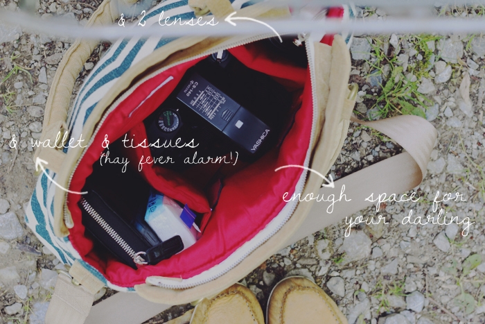 Und jetzt – Überraschung: Meine Handtasche ist keine normale Handtasche, sondern eine Kameratasche!