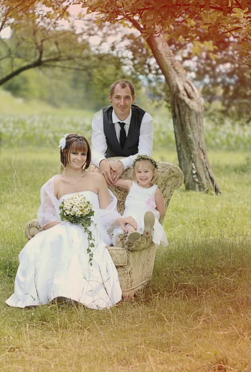 Die Hochtzeitsfotos sind wunderschön geworden. (: Am Besten gefällt mir das Foto mit dem Kind auf dem Sessel und dem gelben Schirm und die letzten Beiden. <3