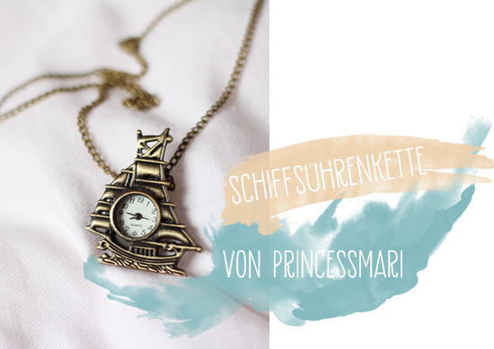 Dieser Preis wurde von Claudia von PrincessMari gesponsert. Es handelt sich hierbei um eine nostalgisch aussehende Kette mit Schiffsanhänger, in dem eine Uhr inkludiert ist. Die Kettenlänge beträgt 80cm Das Schiff hat einen Bronzelook und sieht zu einfachen Shirts oder Blusen sehr gut aus. Vielen anderen Schmuck im Vintagestil findet ihr bei Claudia im Shop. Mit dem Code “magnolia” gibt es 10 Prozent Rabatt auf den gesamten Einkauf (Achtung nur noch bis 30.9.!).