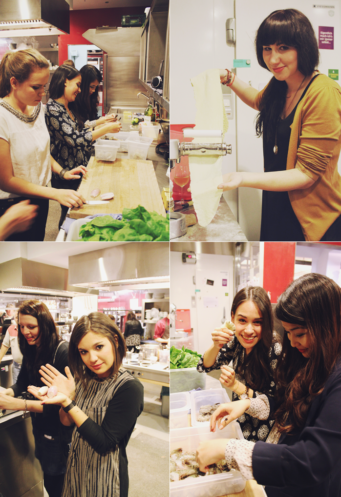 Eines der Highlights war definitiv der Besuch bei coledampf’s and company spät abends. Wir fuhren alle hungrig zu dem Restaurant, welches aus einem riesigen Raum mit Verkaufsflächen, schweren Holztischen, rustikalmodernem Charme und offener Küche bestand. Nach leckerem Prosecco und Seeteufel durften wir uns selbst ans Kochen wagen, zumindest diejenigen, die wollten. Mit “Boris”, dem Koch der Gruppe “Ravioli”, in der ich dabei war, zauberten wir aus einfachen Eiern und Mehl Nudelteig, formten meterlange Teigbahnen, enthüllten Gambas, schnitten Zwiebel, tranken so so leckeren Weißwein und so weiter und so fort – ein toller Ausklang eines guten Tages!