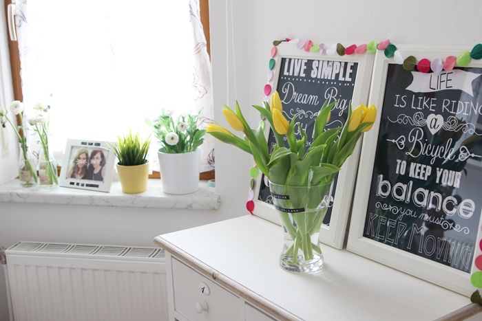 Das Zimmer sieht jetzt viel heller aus und vermittelt sehr das Frühlinghafte! Gefällt mir 🙂