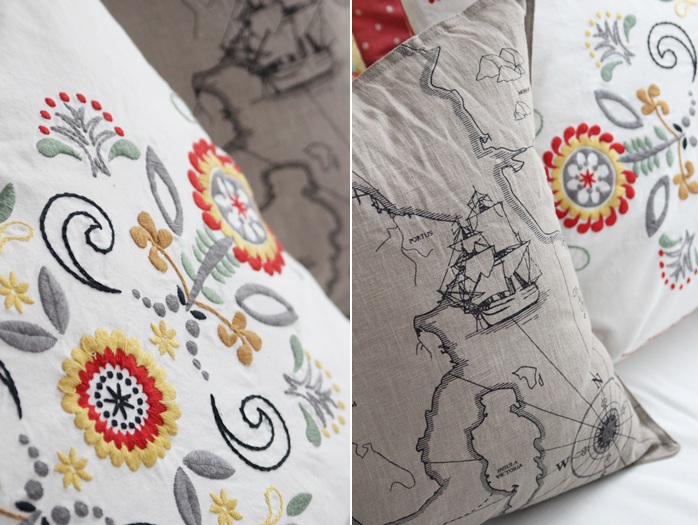– Pflanzen, Gefäße und Kissen (bestickt und Weltkarte) via Ikea
