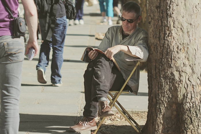der Mann mit der Violine und der Mann, der lesend am Baum lehnt, gefallen mir am allerbesten. Tolle Fotos! Ich finde es faszinierend zu sehen, wenn Menschen in das, was sie gerade tun, einfach total versunken sind.