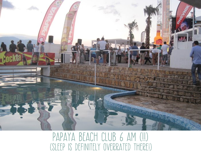 Wir kamen etwa gegen 23.00 an und fanden fast leere Clubs vor… okay. Das ist also ein riesiger Partystrand. Nachts auch? Eine Stunde später nahmen wir unser vorschnelliges Urteil zurück, die Clubs füllten sich zum Bersten und das Tanzen endete auch noch nicht um sechs Uhr morgens als längst die Sonne wieder aufgegangen war. Musikalisch findet man dort hauptsächlich elektronische Musik vor. Das mag ich beim Fortgehen sehr und auch typische Chartsmusik kann man dort genau deshalb genießen, da ich es immer wieder faszinierend finden, wie so viele Menschen und Kulturen aufeinander treffen können und dann vereint zu einem Song singen.