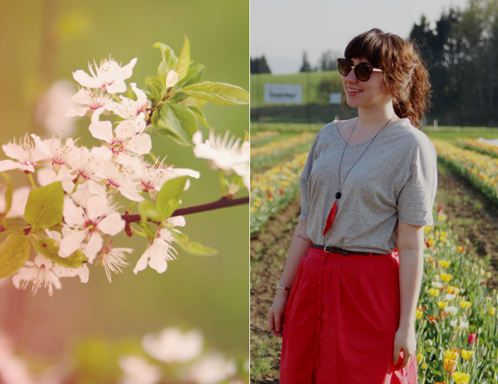Dein Outfit ist wunderschön und passt perfekt zu den tollen Blüten um dich herum. 🙂