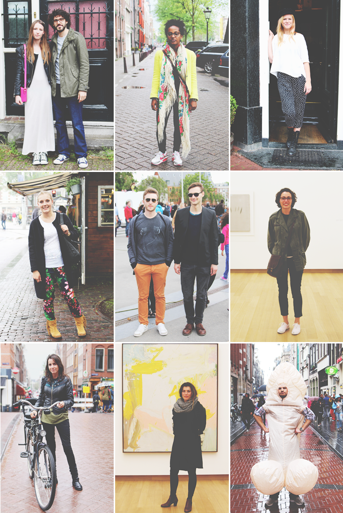 Zwischen gedeckten Farben passend zum Wetter und doch so schön kombiniert und neonpinken- und gelben Elementen, fand man natürlich auch schräge Kostüme (seine Pose!), hier eines davon – denn das, ja – das ist auch Amsterdam.