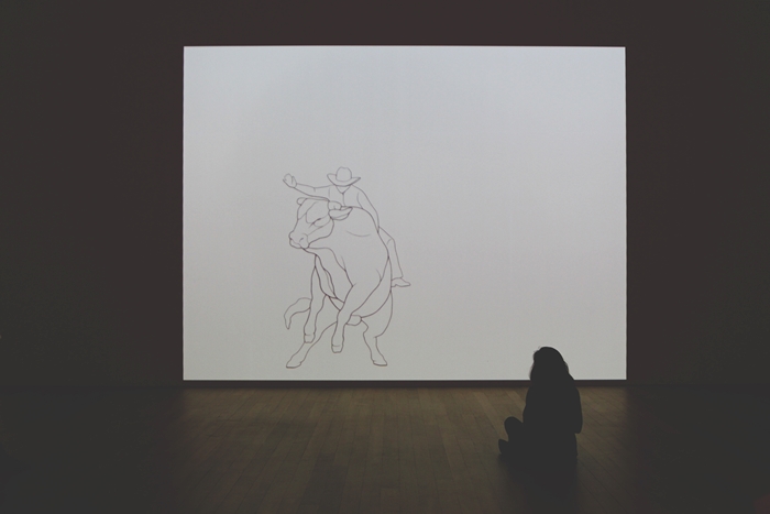 Decke läuft Farbe an den Wänden herab, der Boden ist mit Glitzerperlen gesäumt,