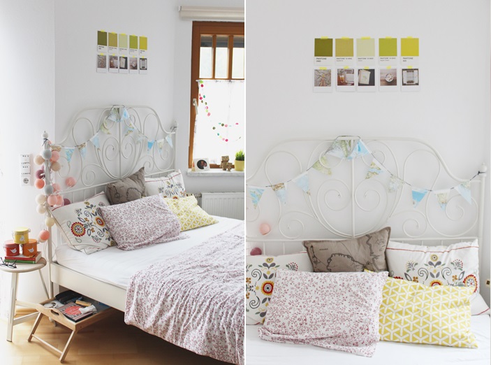 Hach, dein Zimmer ist wunderschön! <3 Ich habe in meinem Zimmer eigentlich nur grüne Akzente (so wie dieses Apple Green), ich liebe die Farbe total, aber wenn ich deine Details sehe, dann bekomme ich direkt Lust zu Ikea zu fahren und neue Dinge zu kaufen 😀