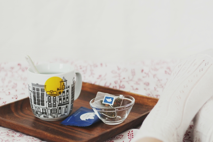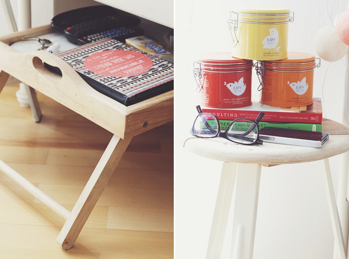Mir ist als erstes das Holztablett unter deinem Bett aufgefallen. Ich muss da an meine Kindheit denken, wie meine Mutti das Tablett rauskramte und mit Zwieback und Tee an mein Bett kam, wenn ich krank war:)