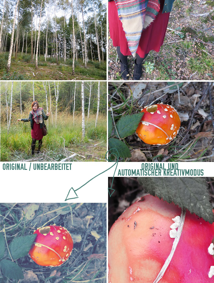 Etwas ganz Spezielles ist die Möglichkeit des Kreativmodus. Wenn man diesen kleinen Knopf (außen am Gehäuse) betätigt und das Foto anschließend schießt, kommen fünf Kreativaufnahmen aus der normalen Aufnahme automatisch dazu. Diese sind in einer Sammlung gruppiert. Das habe ich euch hier mal gezeigt, ich habe mir immer von den sechs Möglichkeiten mein Lieblingsergebnis rausgesucht. Wer also am PC nicht alle seine Fotos nachbearbeiten will, keine Lust auf sowas hat oder das nicht kann, der kann hierbei viel Zeit sparen. Ein Manko ist, dass die Aufnahmen willkürlich entstehen und man keine Möglichkeit hat, an der Bearbeitung mitzuwirken.