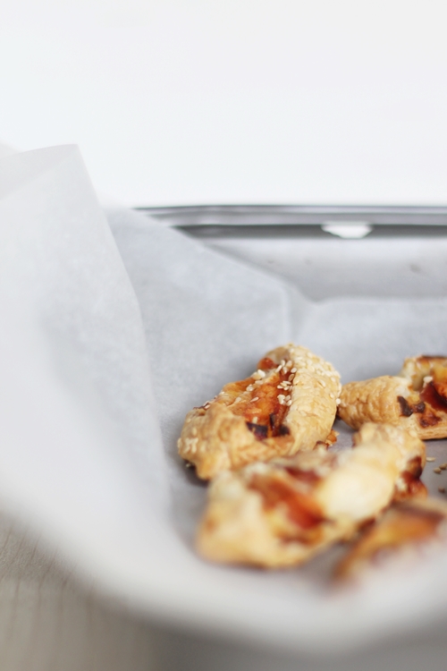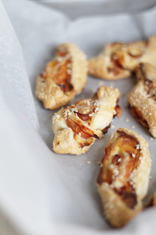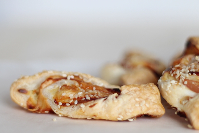 Blätterteigtaschen habe ich noch nie mit Sesam bestreut, obwohl ich ein großer Fan von Sesam bin…Das werde ich demnächst testen müssen!