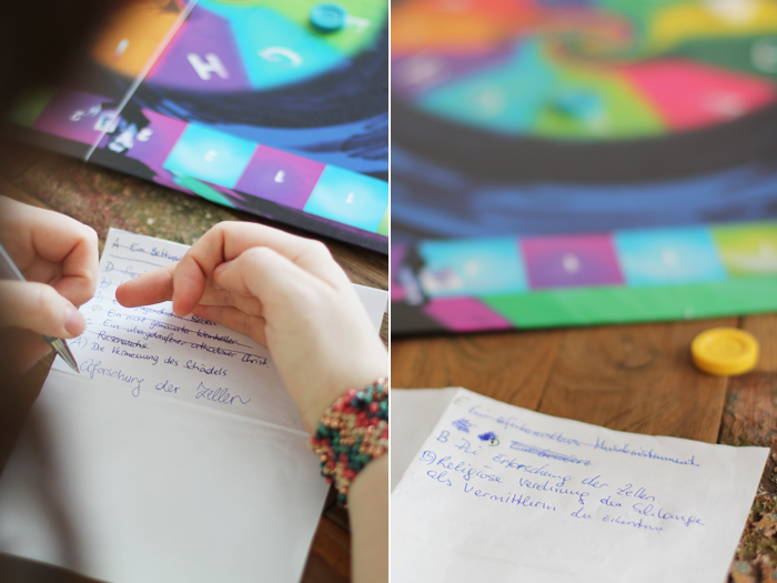 Das Tolle daran: Derjenige, dem am meisten geglaubt wurde, bekommt pro gesetzten Stein auf seine Antwort drei Punkte – errät man die Wahrheit, dann bekommt man zwei. Es macht unglaublich viel Spaß, wenn man das Spiel mit lustigen und kreativen Leuten spielt – was haben wir schon gelacht bei dem Spiel..