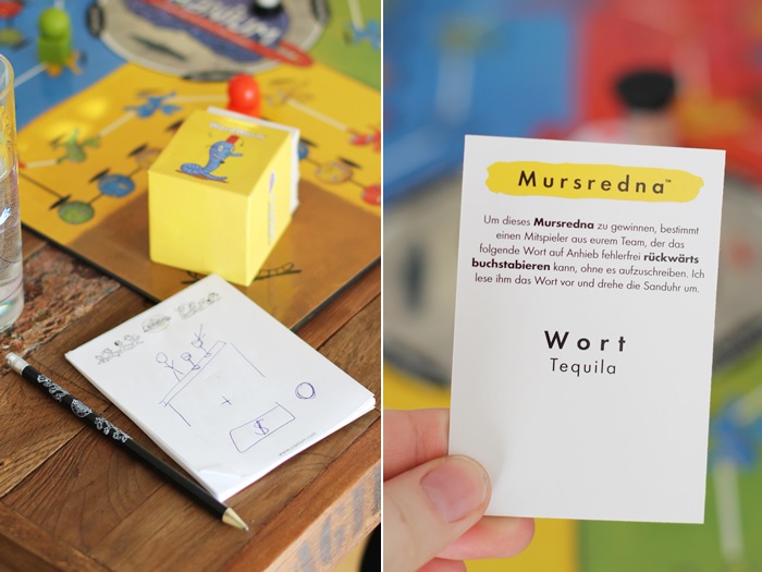 Grüne Runde: Man hat einen Speicher von 15 Wörtern. Man muss in einer Runde so viele Wörter als möglich erklären. Am besten ist es, wenn man Gegenteile nimmt. Ist das Wort “Salz”, sagt man “Zucker”. Im besten Falle, antwortet der Mitspieler im Team dann Salz. Wenn man sein Team sehr gut kennt, schafft man auch mit 15 Wörtern, 15 Punkte zu bekommen, yay!