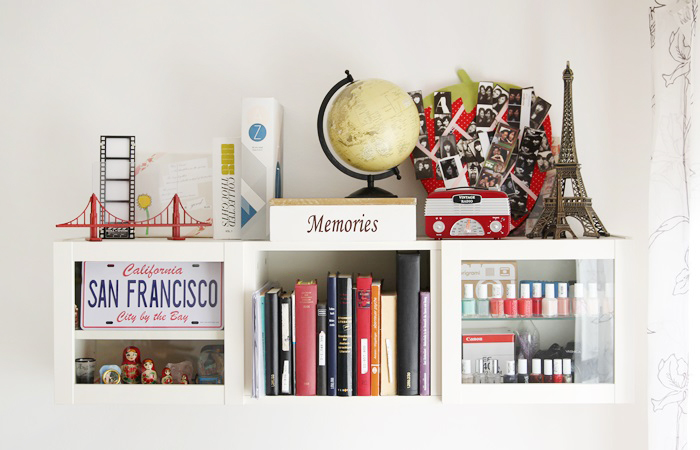 weißes Regal, das von Ikea ist. Anfangs noch als Souvenir- und
