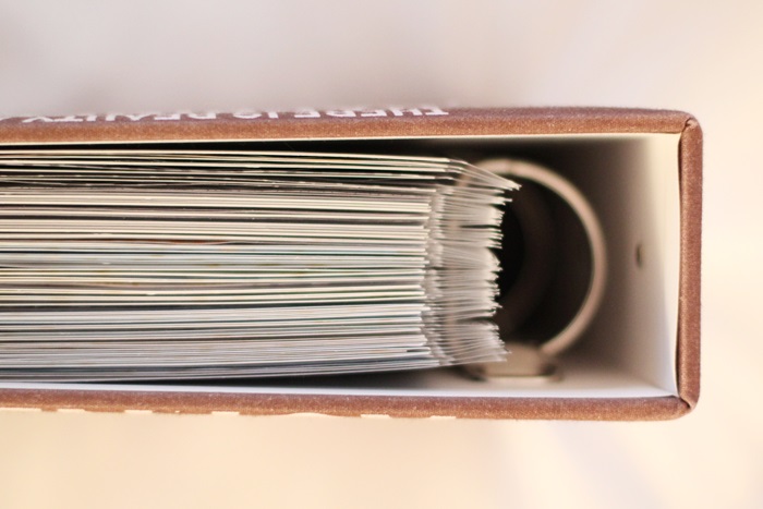 – Bei den Folien muss man darauf achtgeben, dass man die Karten nicht zu rasch/streng reinsteckt oder schief/quer rauszieht. Dann löst sich die Leimung der Folien. Passierte mir aber nur dreimal im ganzen Gestaltungsprozess.