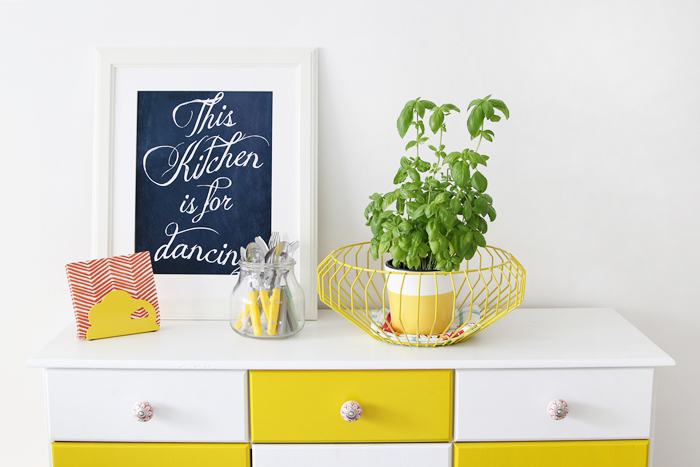 Die Kommode ist wirklich schön geworden! So ein tolles, leuchtendes Sonnen-Gelb! Aus Alt mach Neu – ach, ich liebe das. 🙂