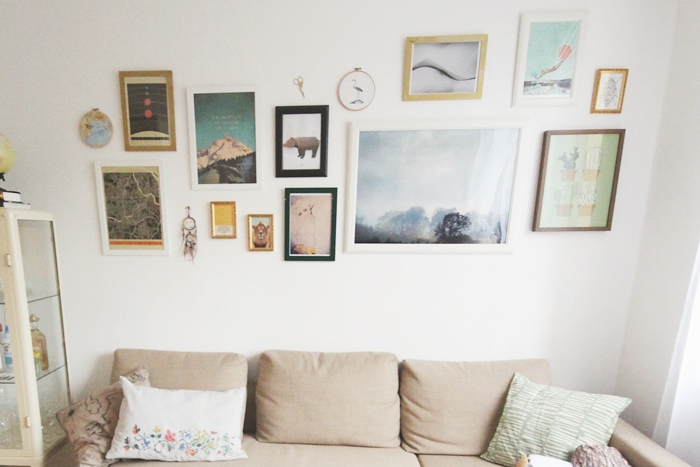 Ich wollte auch so gerne eine Gallery Wall in der neuen Wohnung. Ist aber ziemlich schnell gescheitert. 1. Sind unsere Wände aus purem Beton. 2. Komme ich nur ganz schwer zu Ikea, weil ich kein Auto habe und dann gibt's auch gar nicht so viele Rahmen. Und 3. waren mir zwei Prints schon echt teuer genug. So endete meine Gallery Wall nach zwei Bildern. Tja. 🙁