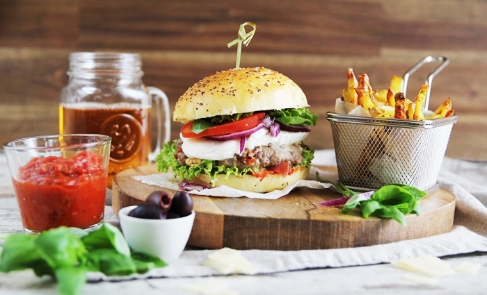 Mittlerweile ist es Mai und in zwei Monaten haben wir unsere Bäuchlein längst schon vollgeschlagen. Damit es gefühlt nicht mehr so lange dauert, haben wir zusammen einen klassischen Burger neu kreiert – auf italienische Art und Weise, was sonst?