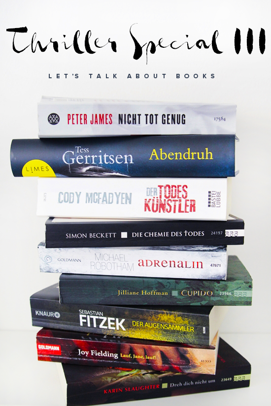 Oh, ich mag deine Thrillerempfehlungen! 🙂 Die meisten Bücher kannte ich zwar schon und viele habe ich auch schon selbst gelesen, aber die Roy Grace-Reihe zum Beispiel sagt mir gar nichts und ich werde sie mir mal näher anschauen und den ersten Band hoffentlich dann auch bald lesen.