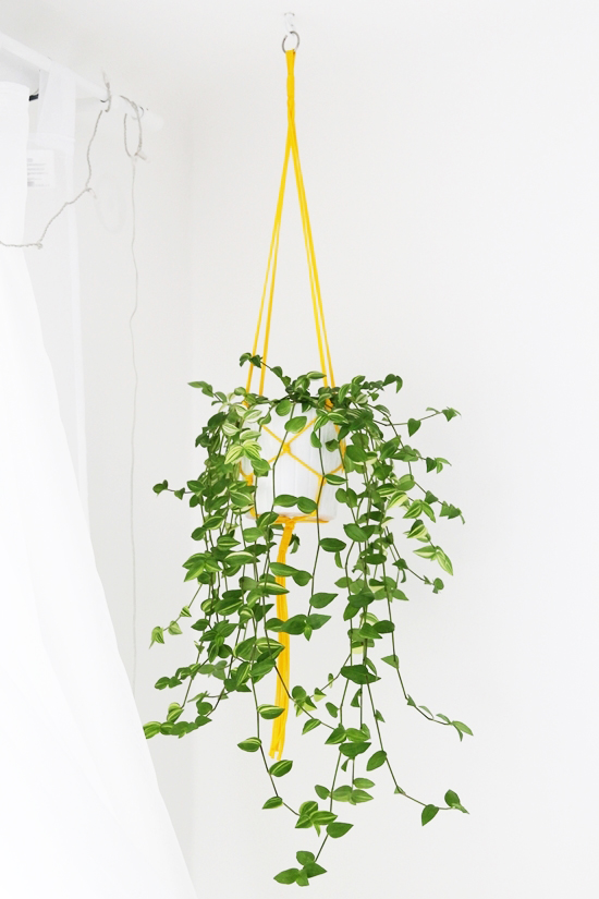 Dein Schlafzimmer ist wunderschön geworden, liebe Stef! Ich mag alles: die zurückgenommene Farbwelt aus schwarz und weiß, die gelben Akzente (Nachttischschrank! Blumenampel!) und das warme Terrakotta und Rattan sowie die Pflanzen als gemütlicher Akzent! Und das Bild überm Bett ist der Knaller <3