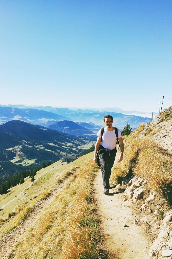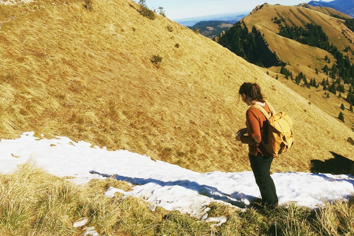 Am Montag zogen wir uns Bommelmützen, windfeste Jacke und Pulli an, ich glaub sogar Handschuhe waren mit, da wir dachten, es sei am Berg schon relativ kalt. Falsch! Wir hatten strahlend blauen Himmel und den schönsten Spätherbsttag dieses Jahres – so konnten wir den Ausblick auf die Alpen und unsere Heimat dahinter, good old austria, bestaunen, hoben sogar einen Geocache in der Nähe des Gipfelkreuzes, waren am riesigen Holzspielplatz wieder ganz Kind und schlürften Almkräuterlimonade auf der Hütte. Es war ebenso ein toller kleiner Ausflug! Wir bewanderten den kleinen Panoramaweg zum Gipfelkreuz (1,5 Stunden angeschrieben, reine Gehzeit ist etwa eine knappe Stunde für den Panoramarundweg). Wenn wir mehr Zeit gehabt hätten, hätten wir noch eine längere Wanderung unternommen, aber auch so reichte das kurze Gefühl, mal wieder ganz hoch oben zu sein und alles überblicken zu können und zum ersten Mal in dieser Saison Schnee berühren zu können. Ob mein kleiner Schneemann dort noch immer steht?