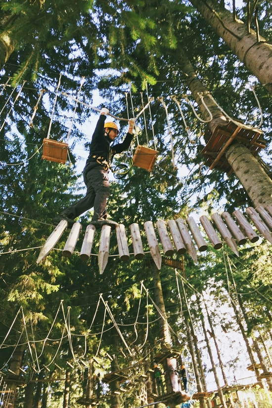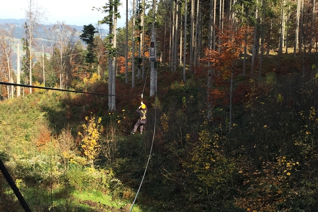 Besonders toll fanden wir den fliegenden Bären – ein reiner Flying Fox-Parcours, der quer durch den Wald verläuft!