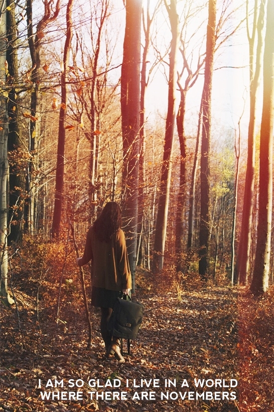 Das Originalzitat lautet übrigens: I’m so glad I live in a world where there are Octobers. – Der Oktober hat mich zwar phasenweise rein wettertechnisch im Stich gelassen, dafür ist es nun der November, der warme Leichtigkeit über das Land fegen lässt. Obwohl die Blätter alle mittlerweile zu Boden gesegelt sind und nur noch in ihrem Dasein als Laubteppich meine Laune heben, tanzte das Herz am vergangenen Wochenende ob der Sonnenstrahlen auf der Haut, dem Rascheln unter den Füßen, die man absichtlich durch die Blätterberge schlurfen lässt und dem unsagbar intensiven Geruch von purem Herbst in der Nase.