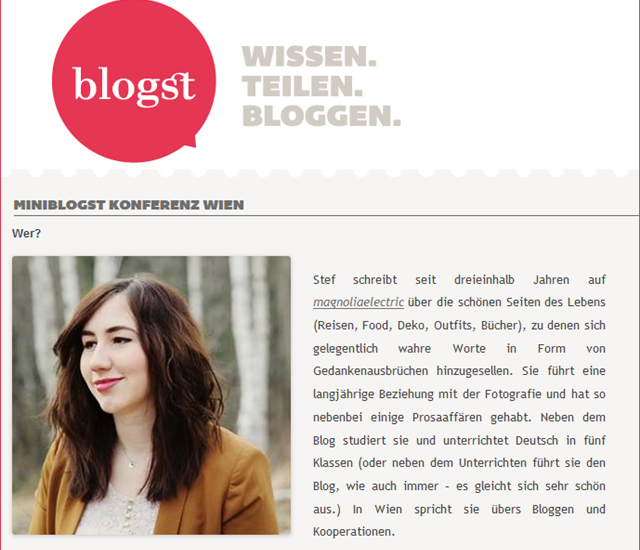Speakerin (Bloggen, Zeitmanagement, Kooperationsformen) auf der Blogst Konferenz Wien - Juni 2014 Link Gestaltung eines Posts für den LOV O[...]